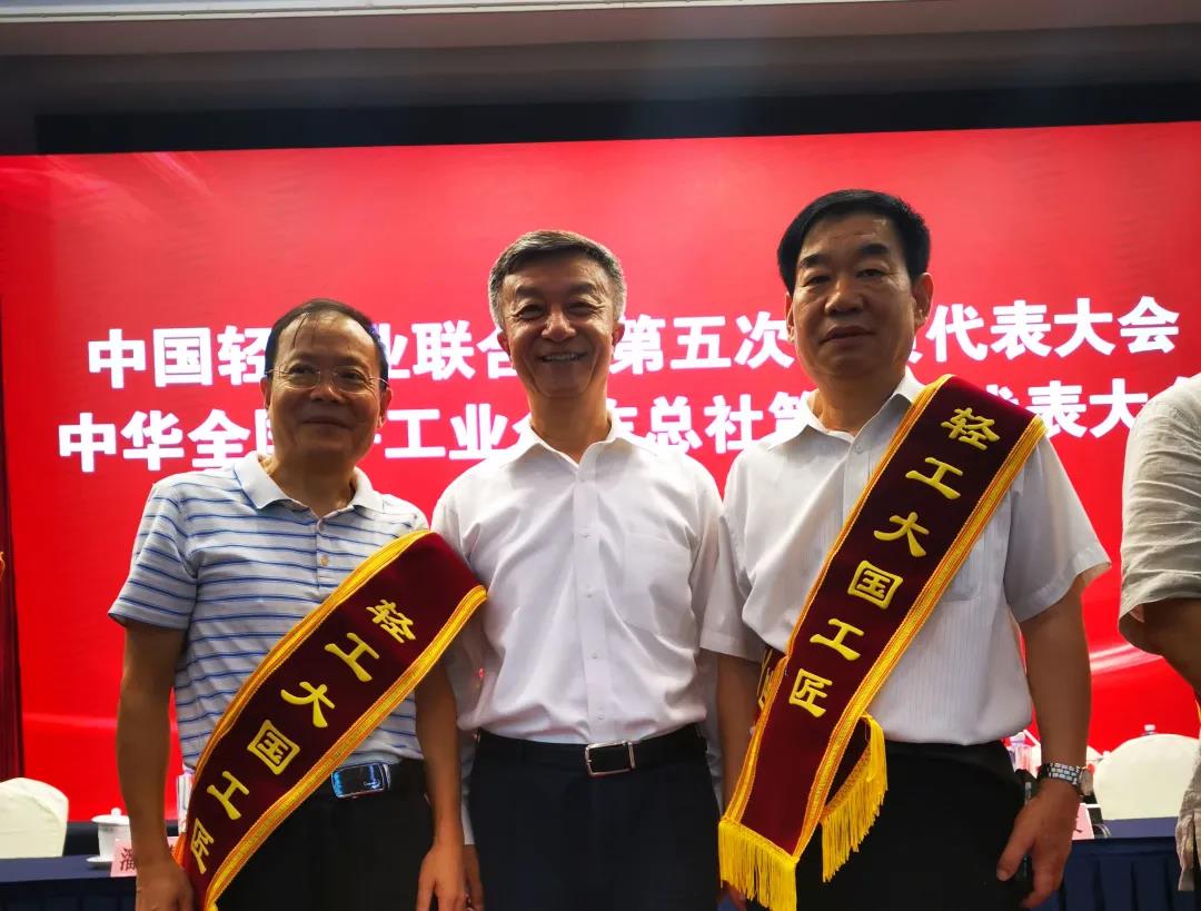 朱文玮理事长与轻工大国工匠夏成文、李白千合影