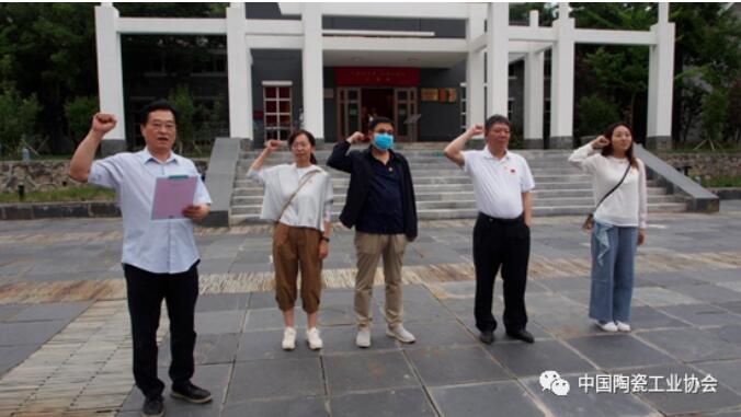 中国陶瓷工业协会党员及员工汇聚在巨幅党旗前
