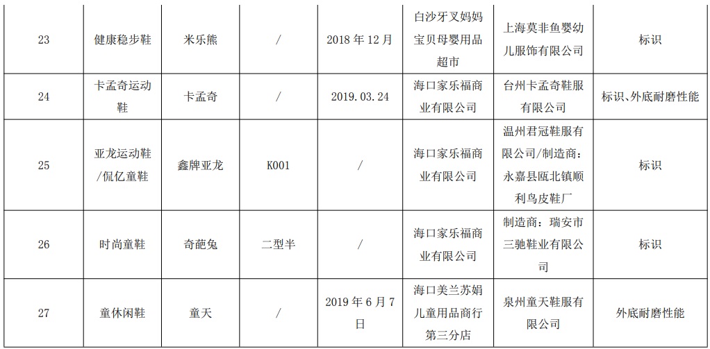 海南省市场监督管理局抽查43批次儿童鞋产品 不合格27批次