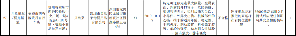 贵州省市场监管局:9批次童车不合格