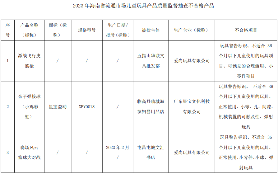 海南省市场监督管理局公布2023年流通市场儿童玩具产品质量监督抽查结果,不合格率为16.7%