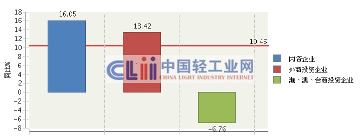 图 2013年上半年日化行业累计主营业务收入企业注册类型同比增长情况