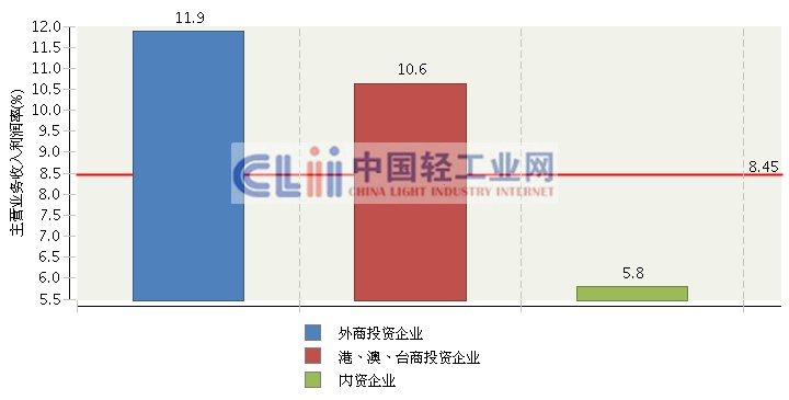 2013年1月~6月,内资企业完成累计主营业务收入占52.58%,高于去年同期的50.23%,同比增速16.05%也领先于其他两类企业;外商投资企业完成累计主营业务收入占29.48%,同比增长13.42%;港、澳、台商投资企业完成累计主营业务收入占17.94%,同比增长-6.76%。