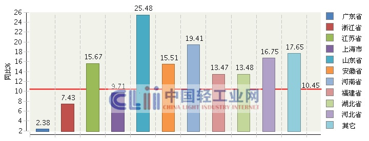2013年1月~6月,全国日化行业规模以上企业(下同)累计完成主营业务收入同比增长10.45%,低于全国轻工全行业累计完成主营业务收增速(14.49%),较本行业去年同期增速11.14%也有所下降。
