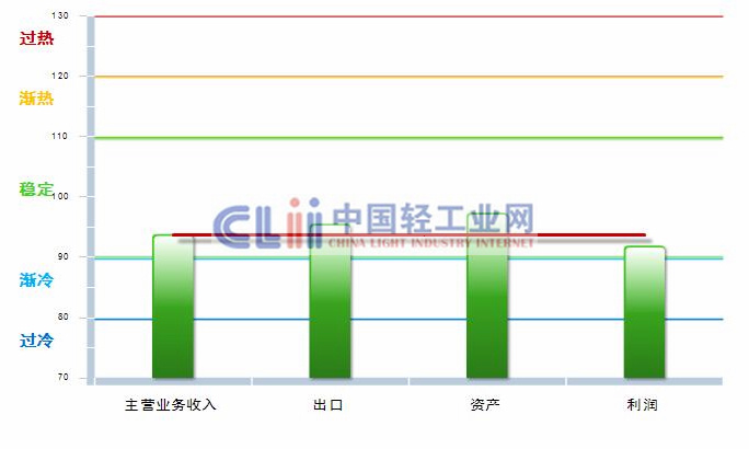 日前发布2013年7月中轻日化景气指数。 2012年6月以来,中轻日化景气指数持续在 “稳定”区域中线以下波动运行。2013年2月达到本阶段峰值99.68,滞后逐月下降,7月该指数跌至93.69。(参见图1.1)