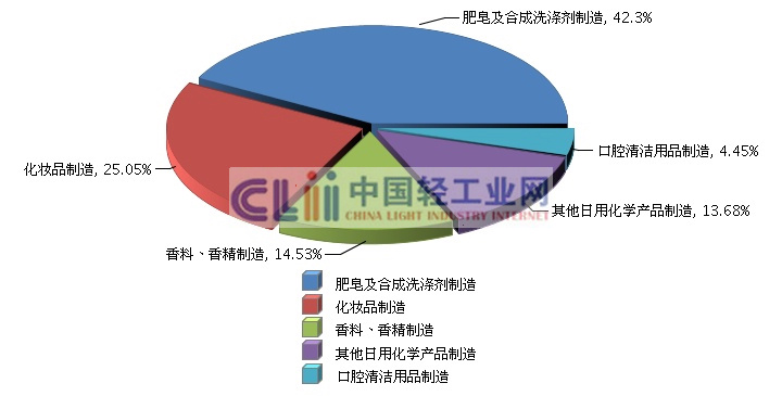 图2.8 2013年1~7月全国日化行业累计主营业务收入行业小类占比情况