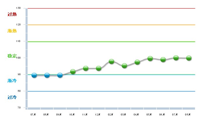 2012年同期,五金行业利润景气指数一直停留在“渐冷”区域。2013年五金利润景气指数呈明显上升趋势,并保持在稳定区。8月指数为90.99,较上月有所下降(如图)。