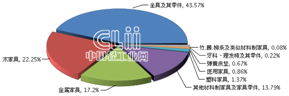 图4 2013年1~7月家具行业主要商品累计出口值占比情况