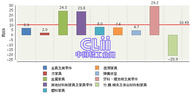 图5 2013年1~7月家具行业主要商品累计出口值增速情况