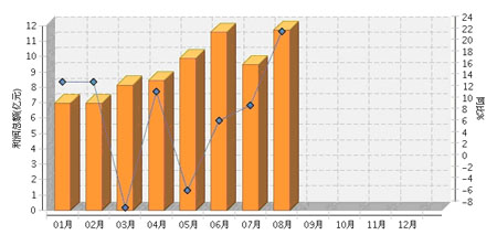 2013年1~8月,全国文教体育行业累计完成利润总额同比增长8%。其中:5月份完成利润总额同比增长-4.6%;6月份完成利润总额同比增长7.52%;7月份完成利润总额同比增长10.16%;8月份完成利润总额同比增长22.97%,利润增幅企稳回升。