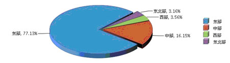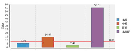 分地区看东部地区占比高东北地区增长快,2013年1~8月,东部完成累计利润总额占77.13%,同比增长5.69%;中部完成累计利润总额占16.15%,同比增长14.47%;西部完成累计利润总额占3.56%,同比增长2.42%;东北部完成累计利润总额占3.16%,同比增长55.51%。