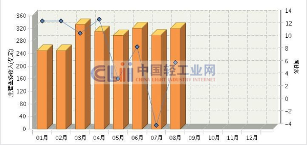 2013年8月日化行业规模以上企业主营业务收入分析
