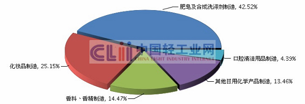 图3 2013年1~8月日化子行业规模以上企业累计主营业务收入占比情况
