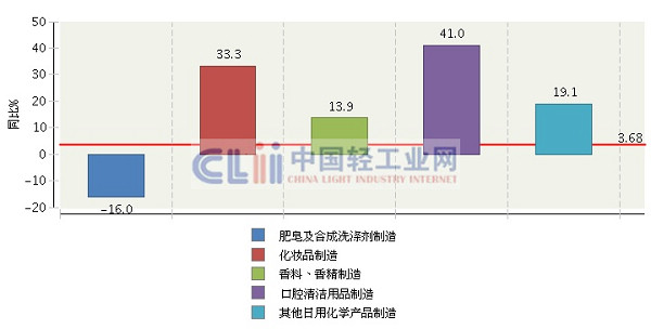 图3 2013年1~8月日化子行业规模以上企业累计利润总额增速情况