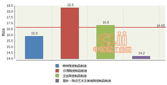 在所有子行业中,日用陶瓷制品制造子行业增速居首,同比增长18.31%;园林、陈设艺术及其他陶瓷制品制造子行业增速居尾,同比增长14.21%,详见图3。
