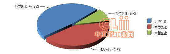 图6 2013年1~9月全国陶瓷行业累计主营业务收入企业规模占比情况