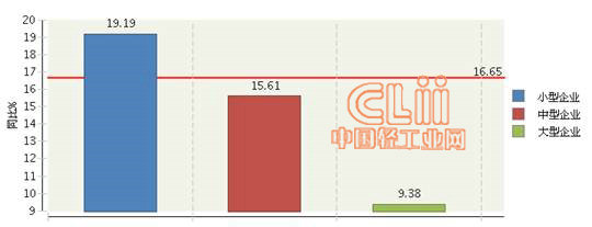 图7 2013年1~9月全国陶瓷行业累计主营业务收入企业规模同比增长情况