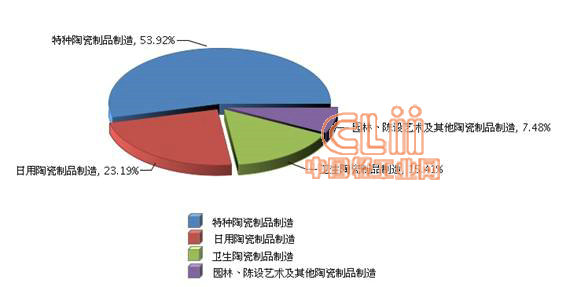 图2 2013年1~9月全国陶瓷行业累计利润总额子行业占比情况