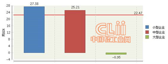 图7 2013年1~9月全国陶瓷行业累计利润总额企业规模同比增长情况