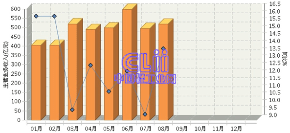1~8月,家具行业规模以上企业(下同)累计完成主营业务收入3同比增长12.39%。与往年相同,8月的主营业务收入较7月有所回升,增速也同时加快,反弹至13.83%,比7月提高了4.45个百分点(图2和图3)。