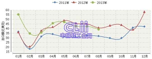 2013年1~8月家具行业出口分析