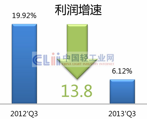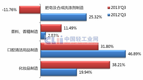 图 2012年及2013年前三季度全国日化子行业利润增速对比