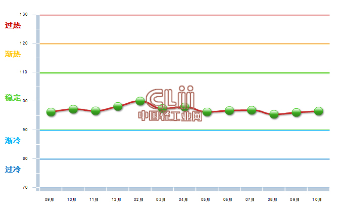 图3 2012年9月~2013年10月中轻照明行业景气指数变化态势