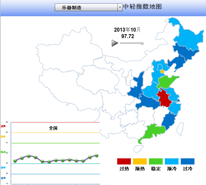 过热地区:安徽省10月份乐器中轻指数为272.87;