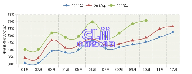 图1 2012年9月~2013年10月家具行业主营业务收入景气指数变化态势