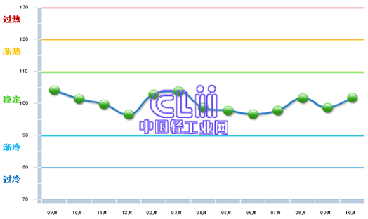 图1 2012年9月~2013年10月家具行业出口景气指数变化态势