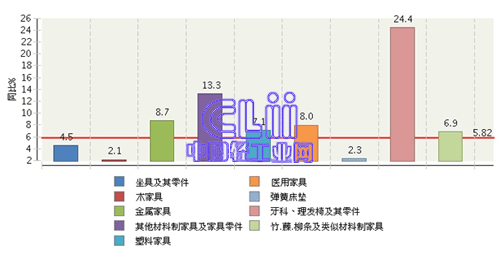 图5 2013年1~10月家具行业主要商品累计出口值增速情况