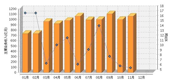 2013年1~11月,全国皮革行业累计完成主营业务收入同比增长9.98%。其中:11月份完成主营业务收入同比增长5.96%。