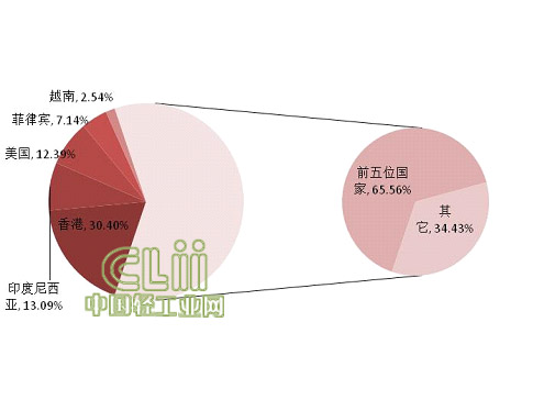 2013年白炽灯出口贸易国情况
