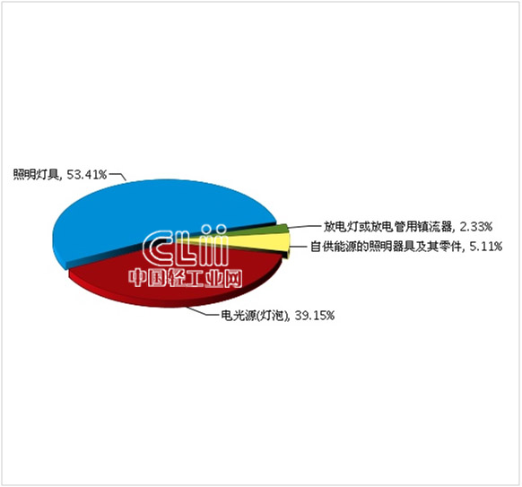 2013年1月~12月福建照明行业累计出口额子行业占比情况