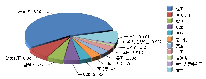 从2013年发生在上述国家和地区的进口额增长情况看,法国同比降低12.6%,澳大利亚同比增长4.4%,智利同比增长13%,德国同比增长47.8%,西班牙同比降低1.8%,意大利同比增长10%,英国同比降低15.7%,美国同比增长16.9%,中国台湾同比降低10.5%。