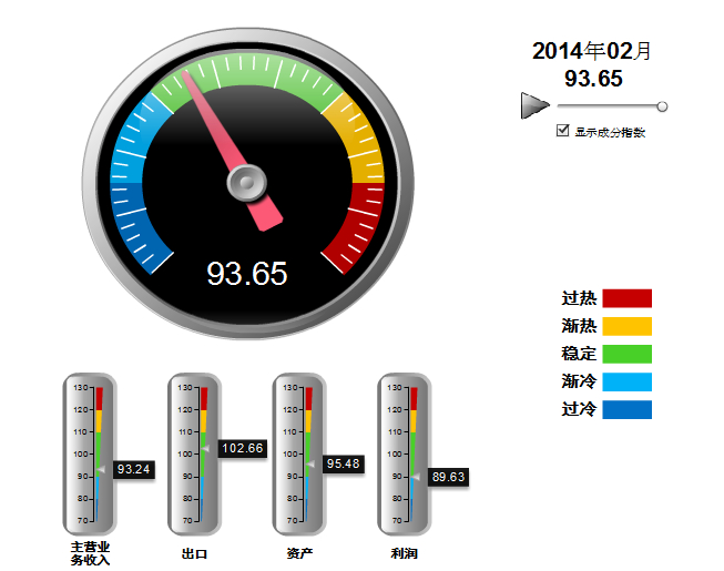图2 2014年2月 皮革行业景气指数分指标显示状况