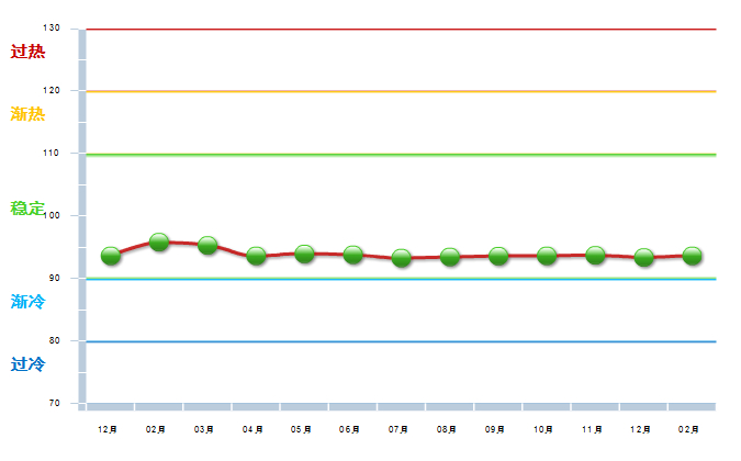 图3 2012.12—2014.2 皮革行业景气指数变化态势