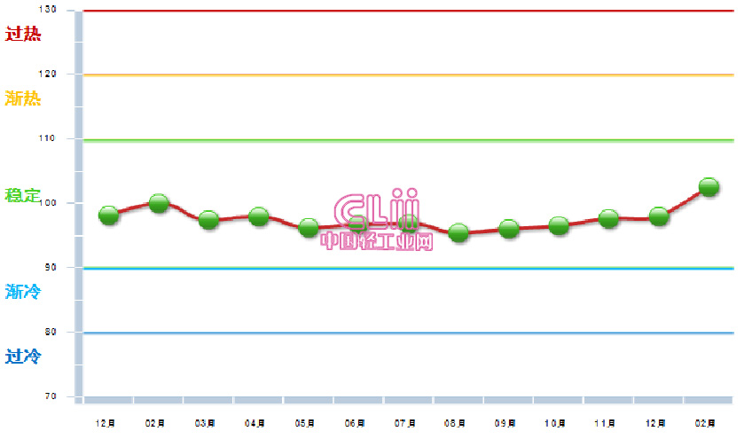 图2 2012年12月~2014年2月中轻照明行业景气指数变化态势