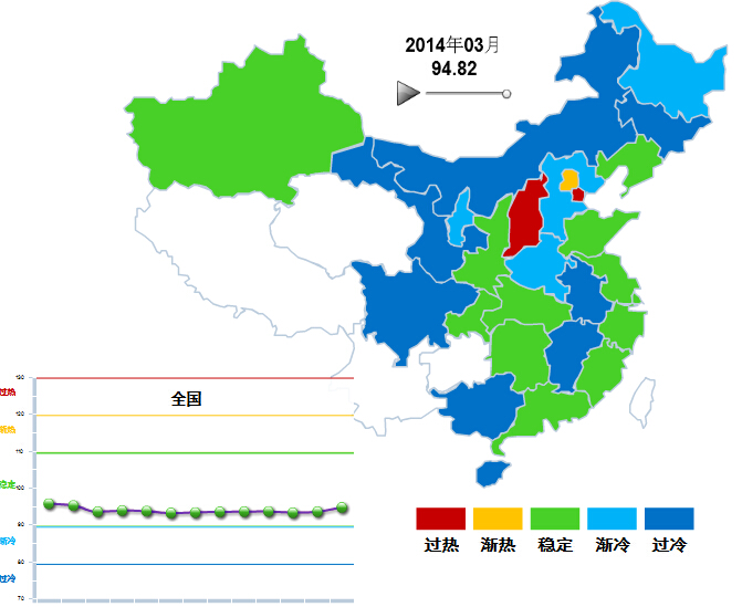 图4 2014年3月皮革行业景气指数分地区显示状况