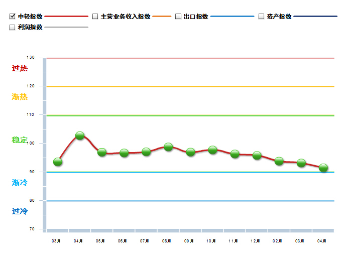 图2 2013年3月~2014年4月中轻饮料景气指数变化态势