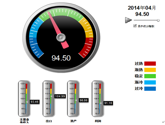 图2 2014年4月 皮革行业景气指数分指标显示状况
