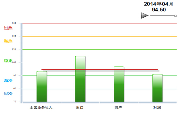 2013年3月至2014年4月,中轻皮革景气指数基本稳定,在90-100间小幅波动,处于稳定提示区的下半区运行。4月中轻皮革景气指数略低于3月(参见图3)。