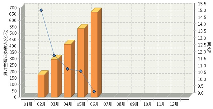 受助动自行车行业增速放缓的影响,行业主营业务收入增速比5月份下降了约1个百分点,2014年1月~6月,全国自行车制造行业累计完成主营业务收入超过600亿元,同比增长9.41%。5月份走稳后,6月份再度下降,目前累计增速已降到10%以下。(参见图2)