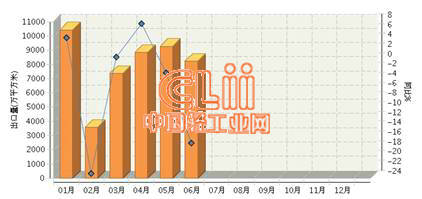 图1 2014年1~6月我国陶瓷瓷砖月度出口量及同比