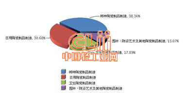 图4 2014年1~6月全国陶瓷行业累计主营业务收入行业小类占比情况