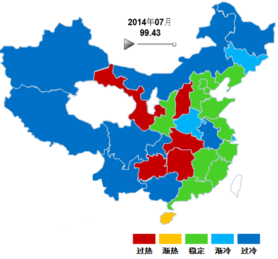7月,贵州、山西、湖北、湖南、甘肃5省日化景气指数位于“过热”区间,占全国地区总数(下同)的17.2%;海南位于“渐热”区间;北京、浙江、广东、天津、江苏、河北、山东、陕西、辽宁、福建、江西等11个地区位于“稳定”区间,占比35.5%;河南、上海、吉林3省位于“渐冷”区间,占10.3%;重庆、广西、新疆、西藏、云南、黑龙江、安徽、内蒙、四川等9个地区位于“过冷”区间,占31%。