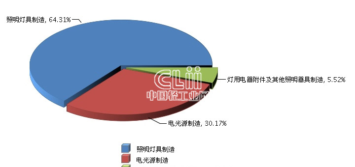 从行业小类利润贡献率看,照明灯具制造累计利润总额占全行业的64.31%,同比增长23.14%;电光源制造累计利润总额占30.17,同比增长11.42%;灯用电器附件及其他照明器具制造累计利润总额占5.52%,同比增长15.92%。