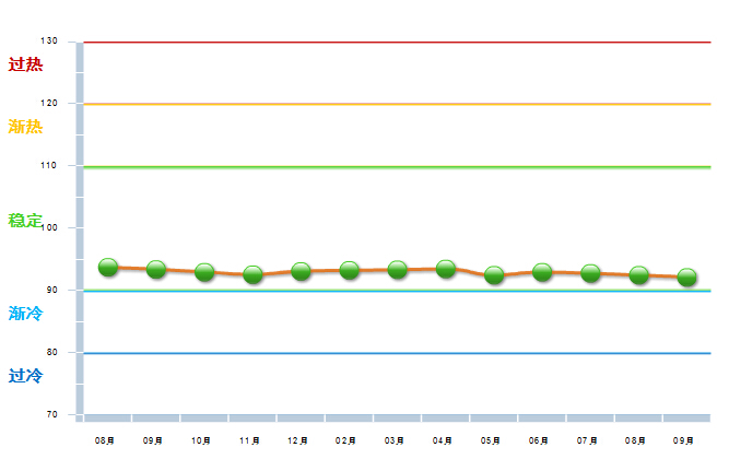 2013年8月至2014年9月,中轻皮革景气指数基本稳定,在90~100间小幅波动,处于稳定提示区的下半区运行。9月中轻皮革景气指数略低于8月(参见图3)。
