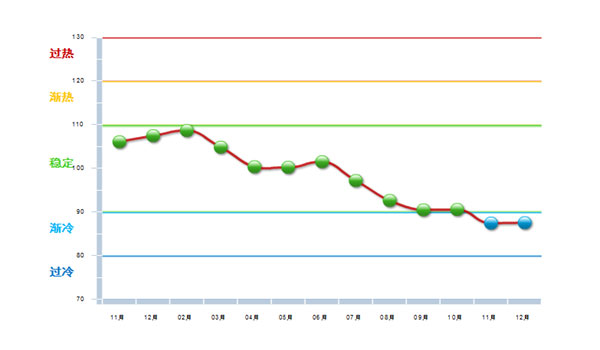 - 2014年1~11月中轻电池景气指数走势2015/2/2 17:13:47