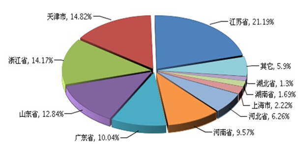 图3 2014年1~12月全国自行车行业累计主营业务收入地区占比情况